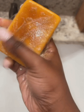 2️⃣ Faites mousser - Frottez délicatement le savon entre vos mains ou directement sur la peau pour créer une mousse onctueuse.