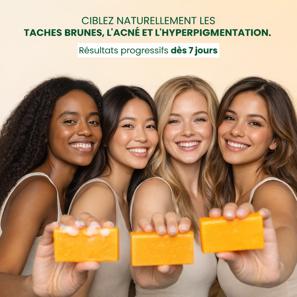 Notre Savon Anti-Taches au Curcuma est le Best-Seller 2025 de Beauty-GlowUp. 200 000+ personnes ont déjà transformé leur peau. Certifié Yuka 98/100, 100% naturel et testé dermatologiquement.